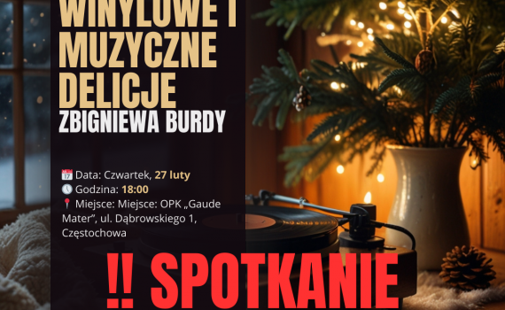 Spotkanie w cyklu „Winylowe delicje” zapowiadane na czwartek 27.02. nie odbędzie się. Zapraszamy na kolejne, marcowe „Delicje”.