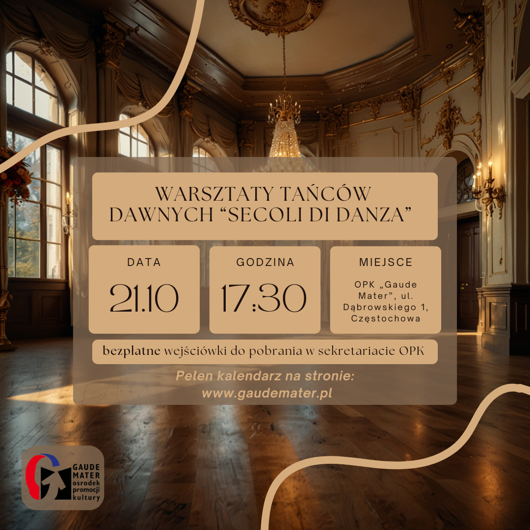 Przenieś się w czasie i poznaj uroki tańców, które niegdyś gościły na królewskich i arystokratycznych dworach. Podczas warsztatów z zespołem Secoli di Danza odkryjesz elegancję dawnych epok, nauczysz się podstaw historycznych choreografii i poczujesz niezwykły klimat minionych wieków.