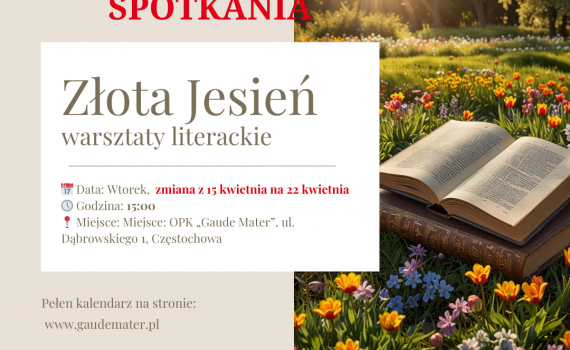 Zapowiedź kwietnia w OPK „Gaude Mater” (ul. Dąbrowskiego 1, Częstochowa): 01.04 – Warsztaty literackie „Złota Jesień”; Warsztaty Tańców Dawnych „Secoli di Danza” (wstęp […]