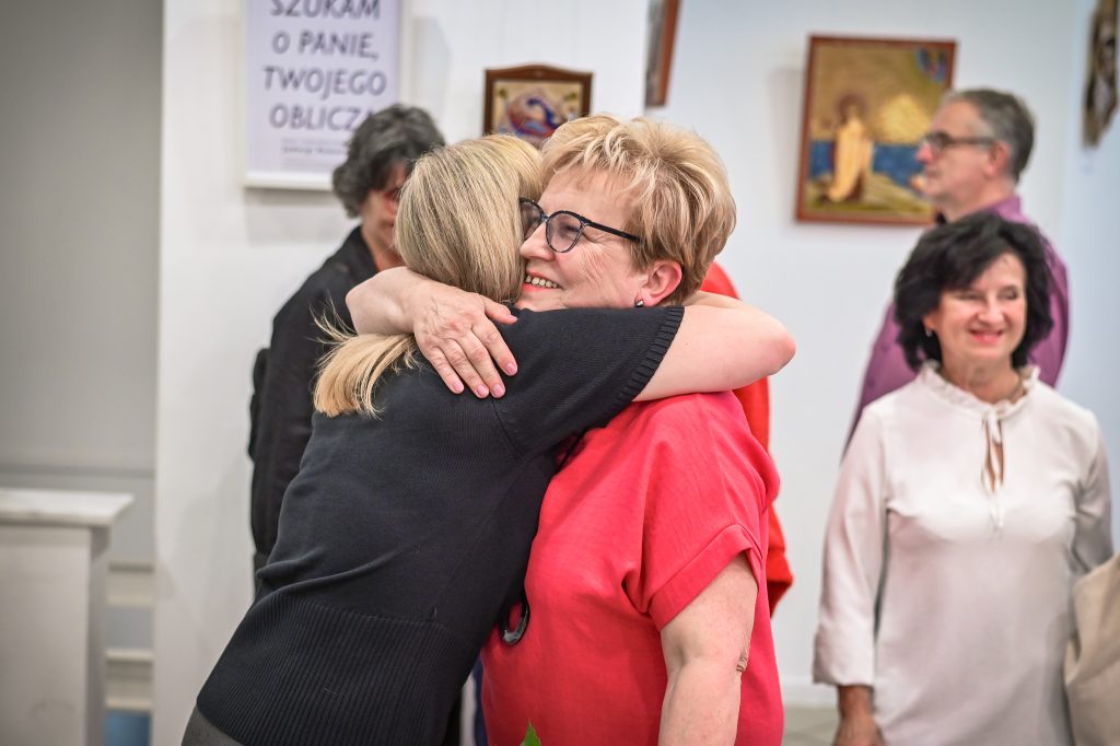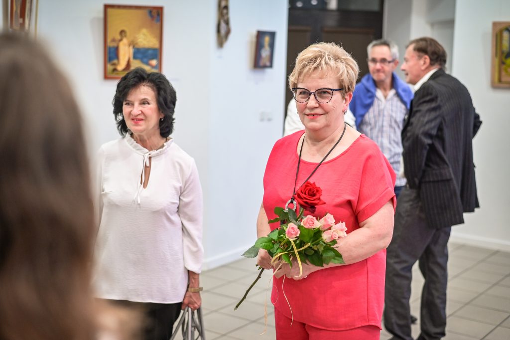 Wernisaż miał kameralny charakter: goście z uwagą oglądali prace, zadawali pytania o techniki i źródła inspiracji, a rozmowy często schodziły na temat tradycji ikonopisania i jej współczesnych odniesień. Wieczór podkreślił duchowy wymiar twórczości Kowalskiej oraz jej konsekwentne poszukiwania w obszarze teologii i historii sztuki.