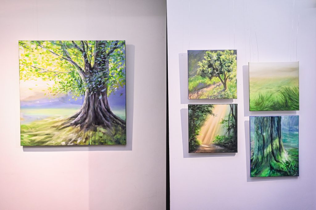 Prace Eweliny ukazywały zarówno struktury liści i pni drzew, jak i ulotne światło przenikające przez gałęzie. Wernisaż zgromadził miłośników sztuki, którzy podziwiali głębię barw i precyzyjny warsztat artystki.