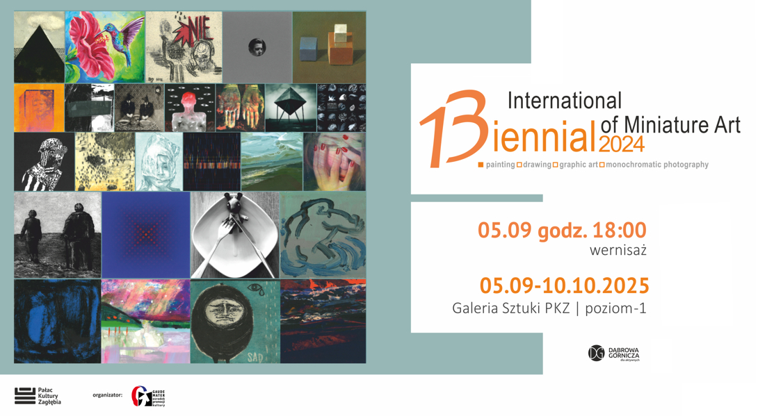 W piątek, 5 września zapraszamy do Galerii Pałacu Kultury Zagłębia w Dąbrowie Górniczej — to ostatnia okazja, by zobaczyć zestaw ponad 250 miniatur zakwalifikowanych na pokonkursową wystawę 13. Biennale.